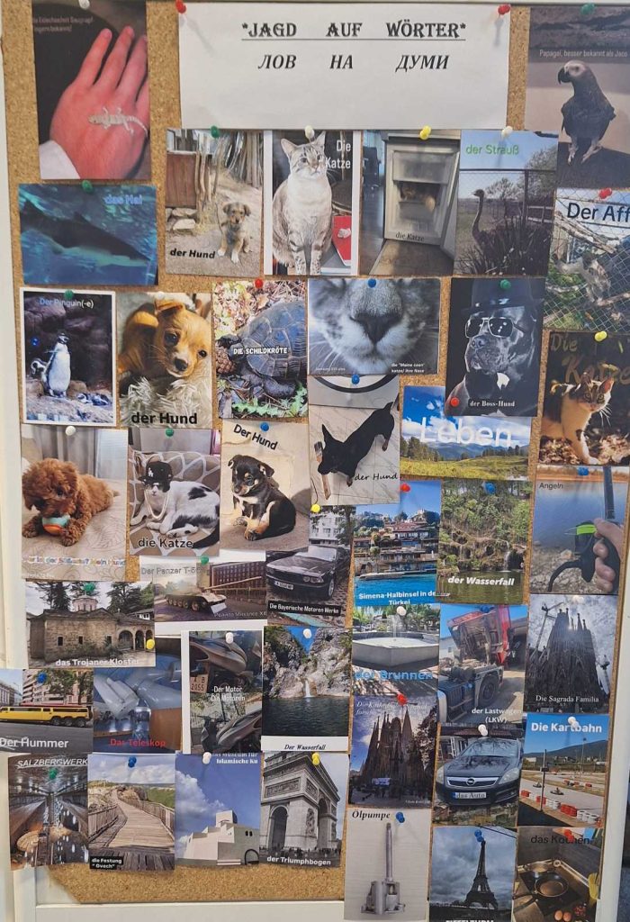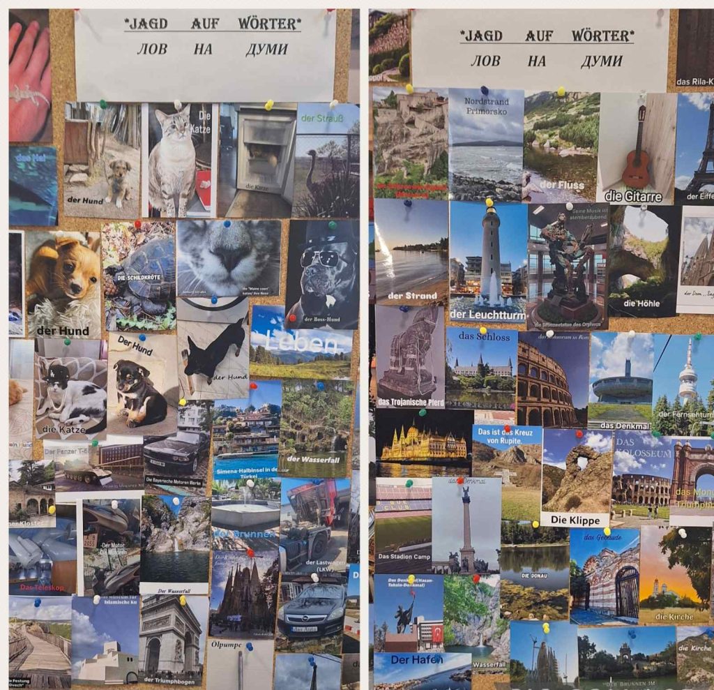 Задачата на гимназистите беше да открият и представят немски думи чрез снимка, направена лично от тях. Получиха се оригинални изображения, отразяващи летните им преживявания – посещения на интересни места, моменти с домашни любимци и впечатления от любимата техника. Всяка снимка бе придружена от съответната дума на немски език, което превърна работата в увлекателно съчетание между творчество и езиково обучение и показа, че изучаването на чужди езици може да бъде едновременно полезно и забавно, а немският език – част от ежедневието на нашите ученици.