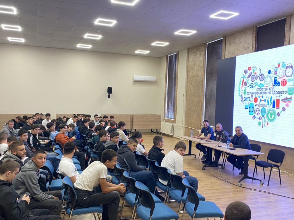 Учениците проявиха активност, задаваха въпроси и споделяха свои мнения, а г-н Дремсизов отговаряше с професионализъм и увлекателност, превръщайки разговора в своеобразна дискусия за ролята на спорта, храненето и дисциплината в изграждането на здрав дух и тяло.