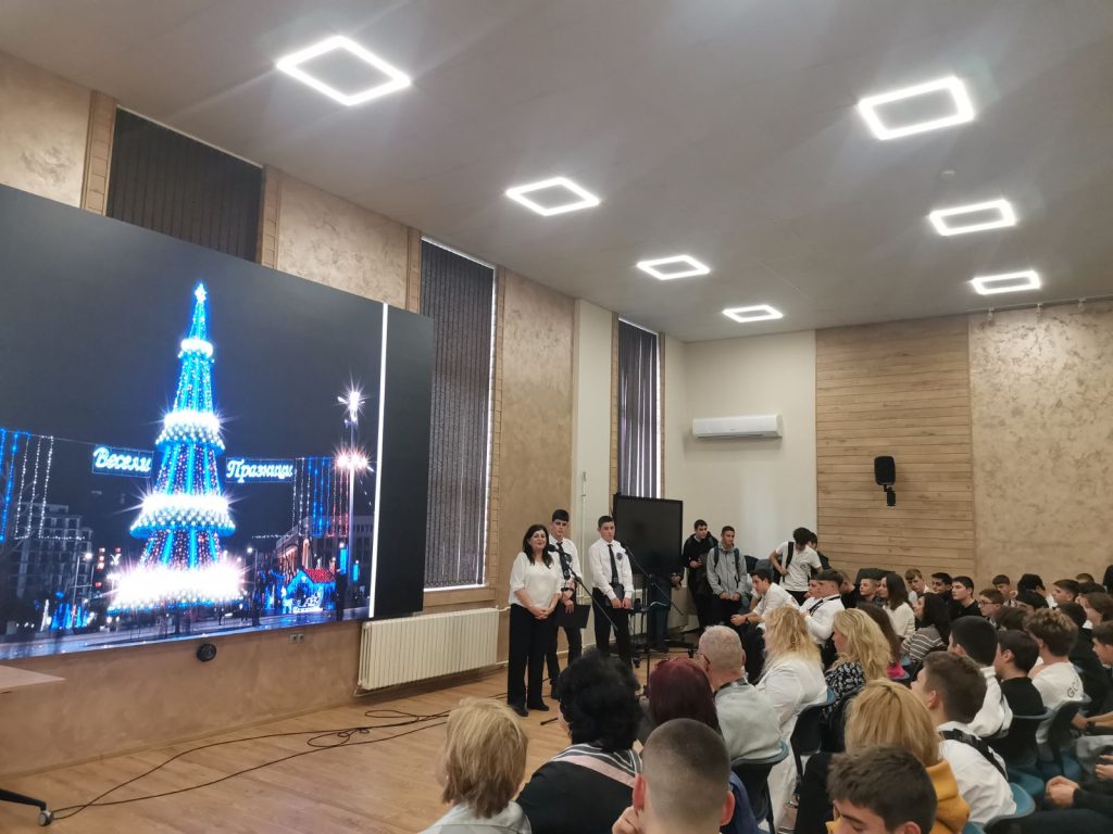 Учениците от осми клас подготвиха впечатляващо празнично тържество, което съчета духовни традиции, исторически разкази и съвременно творчество. Събитието превърна сцената в място, където Коледа, минало и бъдеще се срещат.