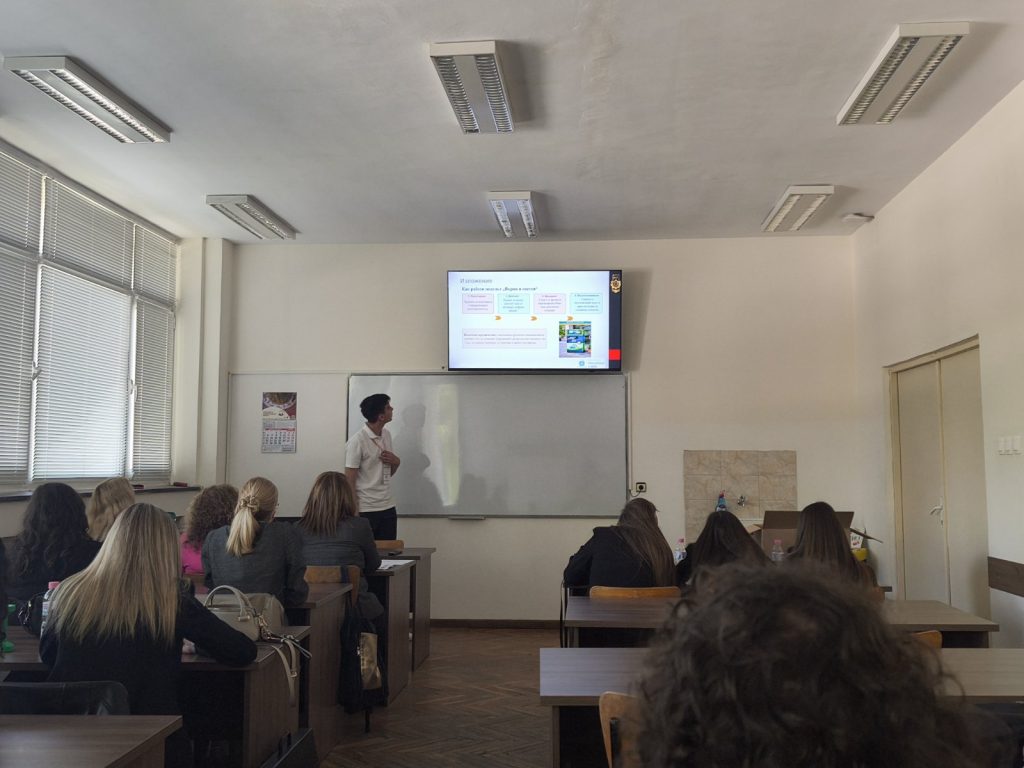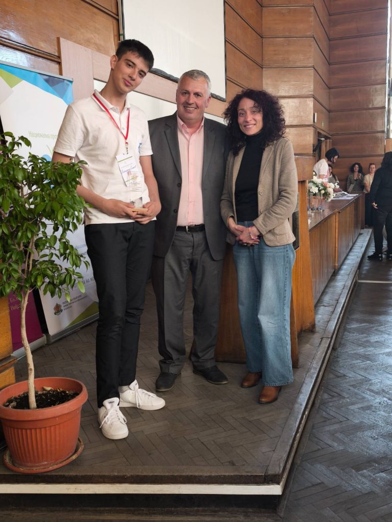А големият момент за ПГМЕЕ – Бургас дойде в направление „Икономика и предприемачество“. Нашата колега г-жа Мариета Доковска и нейният ученик Константин Стоянов от 10 е клас направиха впечатляващ дебют — първо участие на такъв форум, първо представяне в подобна конкурсна среда и още от първия път — трето място.