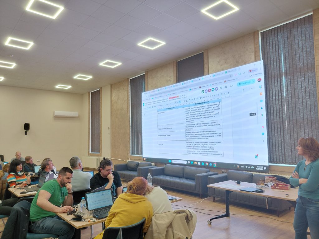 В съответствие със стремежа на ПГМЕЕ за постоянно усъвършенстване и внедряване на съвременни образователни стандарти, екипът на нашата гимназия стартира специализирано обучение на тема „STEM образование с програмата на INTEL: Умения за иновации“.Обучението, в което се включиха 22-ма педагогически специалисти, е част от годишния план за външна квалификация на педагогическия екип и се провежда от експертите на Център за творческо обучение.